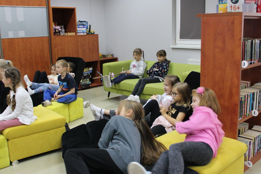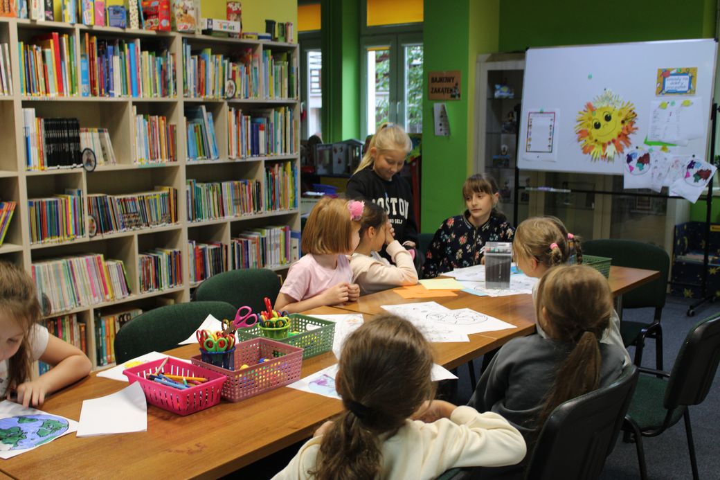 W dniu 24 września 2025 roku w Oddziale dla Dzieci i Młodzieży odbyło się pierwsze spotkanie w ramach projektu My Dzieci Świata – co różni a co łączy dzieci na całym świecie. Hasłem przewodnim zajęć był temat; Na kuli ziemskiej bawią się dzieci, cieplutkie słonko dla nich wciąż świeci” – poznajemy zabawy dzieci z różnych krajów świata. W pierwszej części spotkania omówiono zasady na dobry początek. Podsumowaniem rozmów było wykonanie słoneczka z papierowych rączek. Dzieci uczestniczyły również w zabawach integracyjnych, a także wykonały zadania edukacyjne polegające na szyfrowaniu hasła przewodniego zajęć. Uczestnicy mieli okazję oglądnąć film edukacyjny o życiu dzieci w różnych krajach świata. Na koniec odbyła się zabawa Piniata popularna w krajach latynoskich.