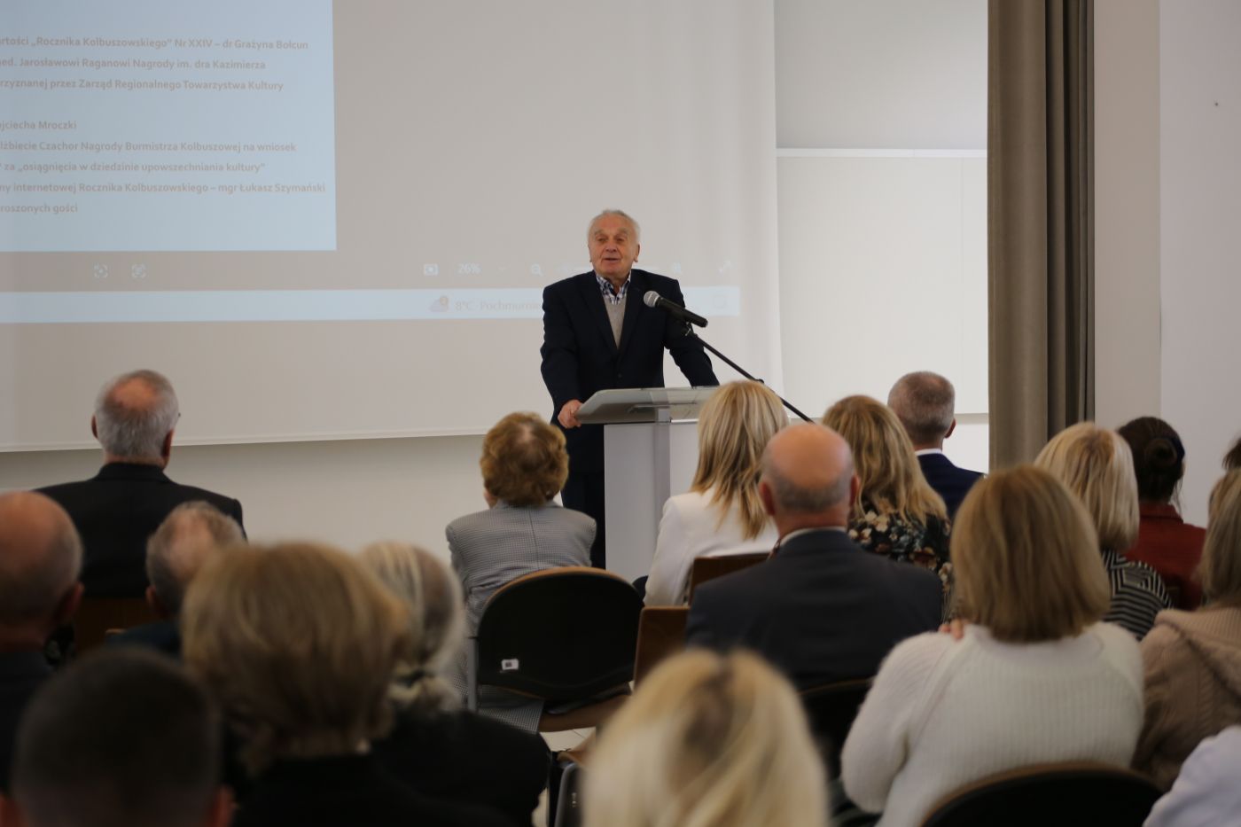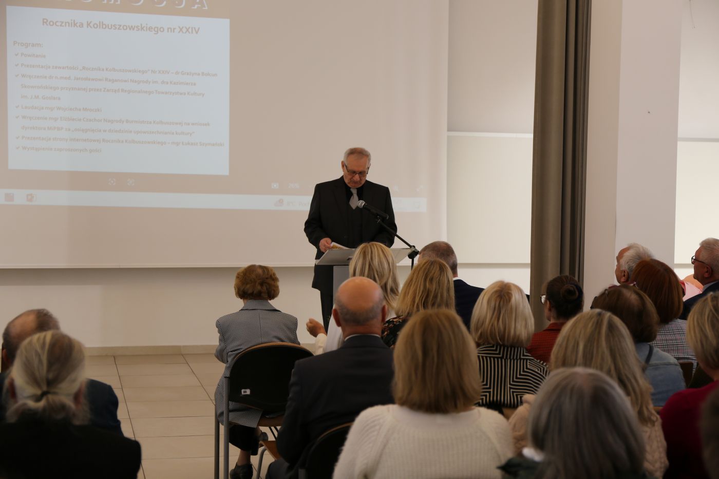 W dniu 30 września 2025 r. w Oddziale Edukacji Kulturalnej i Regionalnej odbyło się spotkanie promocyjne Rocznika Kolbuszowskiego nr 24. Zawartość Rocznika przedstawiła dr Grażyna Bołcun Redaktor Naczelny tego numeru periodyku. Podczas spotkania odbyło sie także wręczenie nagród: Nagrodę im. dra Kazimierza Skowrońskiego przyznaną przez Zarząd Regionalnego Towarzystwa Kultury im. J.M. Goslara otrzymał dr n. med. Jarosław Ragan. Laudację do tej nagrody wygłosił Wojciech Mroczka. Nagrodę Burmistrza Kolbuszowej na wniosek dyrektora MiPBP w Kolbuszowej „za osiągnięcia w dziedzinie upowszechniania kultury” w tym roku otrzymała Elżbieta Czachor. Laureatom serdecznie gratulujemy! Na koniec spotkania mgr inż. Łukasz Szymański zaprezentował nową stronę internetową Rocznika Kolbuszowskiego.