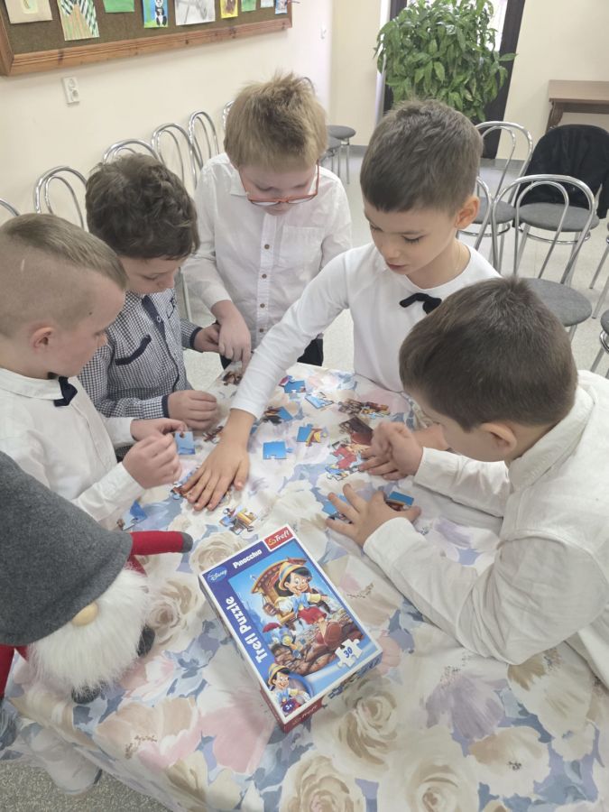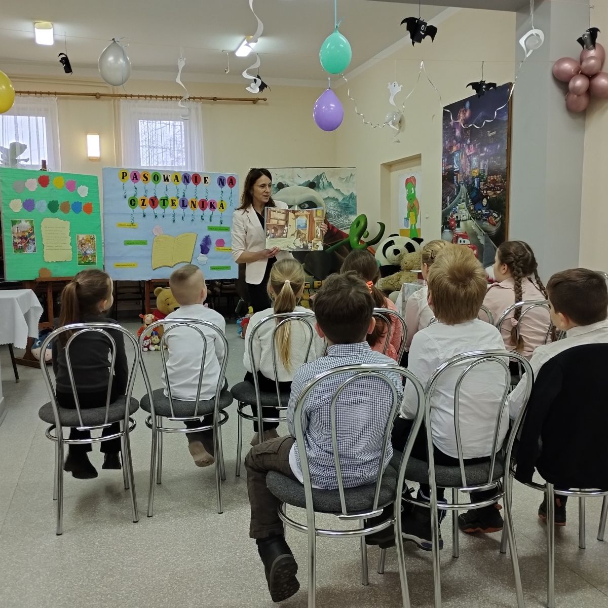 Tradycją filii biblioteki w Przedborzu jest uroczyste przyjęcie uczniów klasy I do grona czytelników biblioteki. W tym roku „Pasowanie na czytelnika” odbyło się 09.12.2025 r. i był to bardzo ważny dzień, gdyż od tej pory rozpoczęła się ich czytelnicza przygoda z książką. Zanim jednak uczniowie złożyli uroczyste przyrzeczenie, musieli wykazać się wiedzą biblioteczną oraz znajomością baśni i postaci bajkowych. Wspólnie rozwiązywali biblioteczną krzyżówkę oraz układali rozsypanki wyrazowe . Drużynowy konkurs w układaniu puzzli na czas i szukanie ukrytych w bibliotece liści z hasłami to kolejne zadania z którymi przyszli czytelnicy znakomicie sobie poradzili. Następnie zapoznali się z regulaminem biblioteki, sposobem wypożyczania książek oraz poznali prośby książki. Przyszli czytelnicy złożyli przyrzeczenie że będą kochać i szanować książki, korzystać z ich mądrości i sumiennie wypełniać obowiązki czytelnika.Po tej części spotkania każde dziecko zostało uroczyście pasowane na czytelnika biblioteki i otrzymało pamiątkowy dyplom, zakładkę i prezent. Spotkanie przebiegło w miłej i przyjaznej atmosferze a biblioteka będzie kojarzyła się najmłodszym czytelnikom z miejscem bezpiecznym, przyjaznym i radosnym, gdzie uczniowie są zawsze mile widziani.