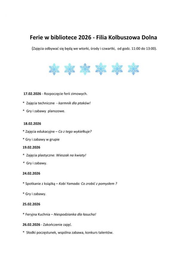 Ferie 2026 w Kolbuszowej Dolnej