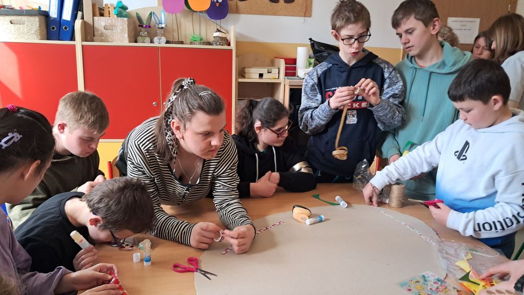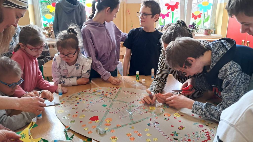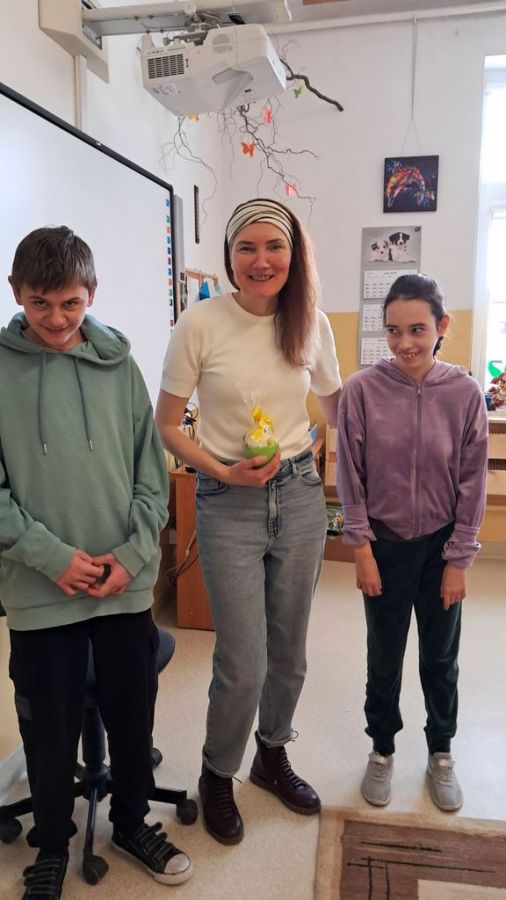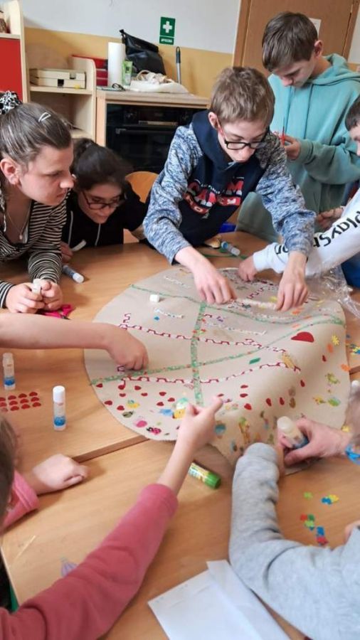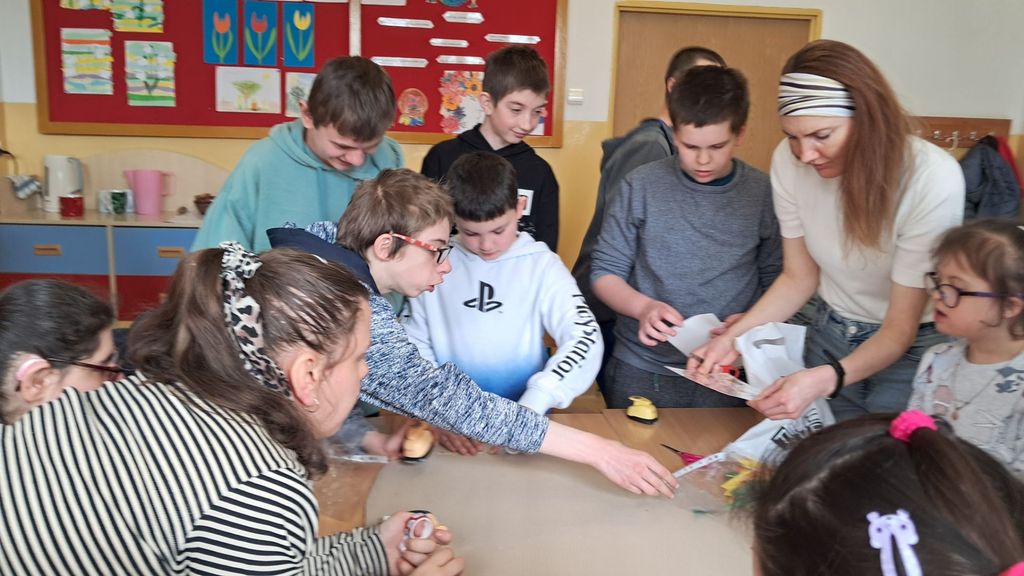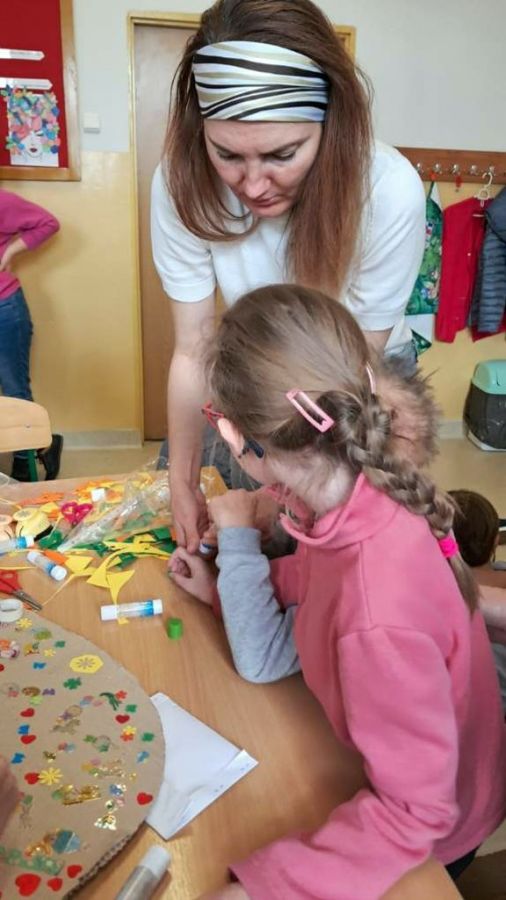 Spotkanie zakończyło się wspólnym udekorowaniem wiosennej, świątecznej pisanki.
