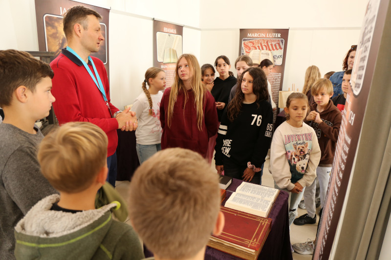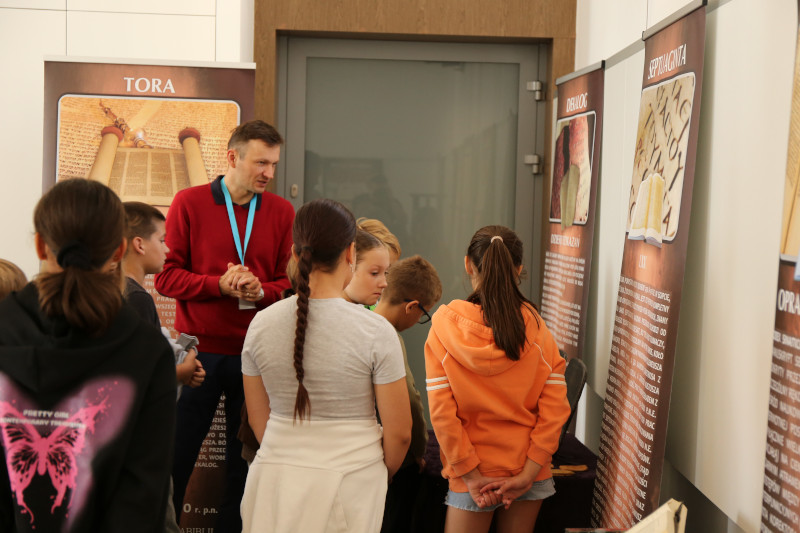 W miesiącu wrześniu 2025 r. gmach Oddziału Edukacji Kulturalnej i Regionalnej odwiedzają kolejne grupy gości zgłębiających sięgającą wiele wieków wstecz historię Pisma Świętego. 18 września, aktualną ekspozycję "Historia Biblii" odwiedzili Uczniowie Szkoły Podstawowej nr 2 im. Krzysztofa Kamila Baczyńskiego wraz z Opiekunem.