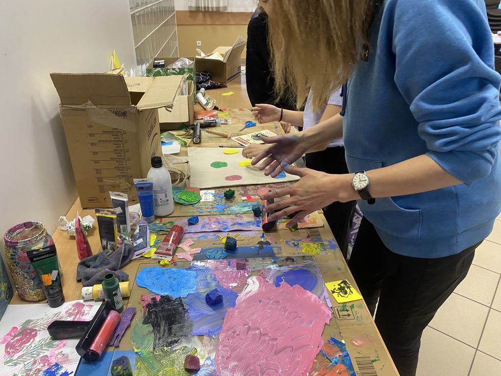 W trakcie spotkania każdy z jego uczestników miał okazję, aby metodą linorytu wydrukować swój pomysł na ozdobę podręcznej bawełnianej torby na książki lub inne potrzebne rzeczy. Pośród indywidualnych projektów dominowały ulubione postaci z kreskówek oraz zwierzęta. Każdy z tych projektów to szansa na twórcze wyrażenie siebie, swoich emocji i osobowości. Mamy nadzieję, że oprócz poznania nowych umiejętności w dziedzinie plastyki warsztaty przyczyniły się do tego, aby młodzi twórcy rozwinęli swoje zdolności do kreatywnego myślenia. Cotygodniowe spotkania były też okazją do wzajemnego poznania i integracji. Serdecznie dziękujemy wszystkim uczestnikom projektu oraz ich rodzicom za udział i zaangażowanie.