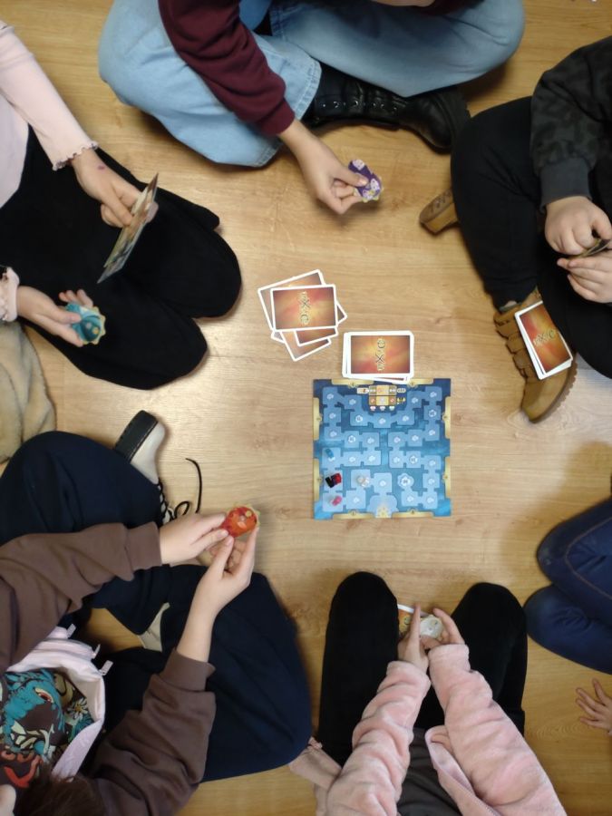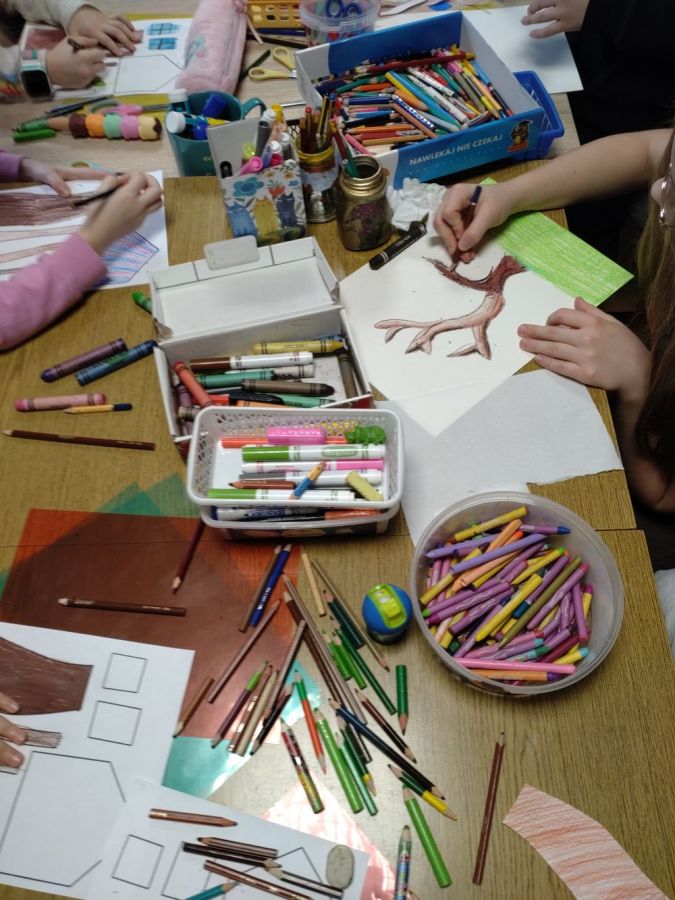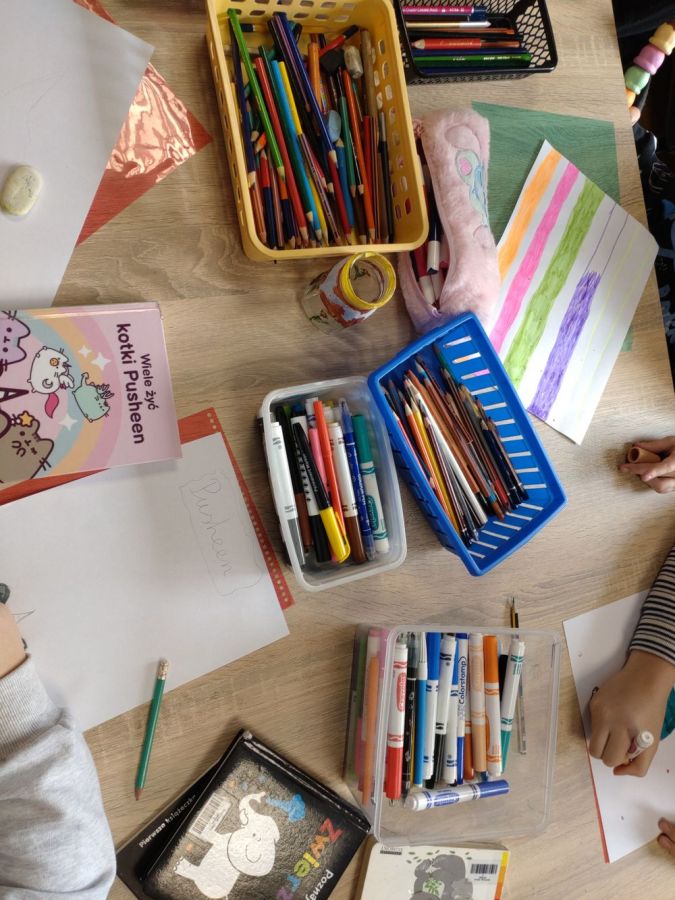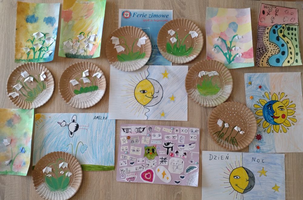 Ferie w bibliotece były doskonałą alternatywą dla czasu spędzanego przed ekranem, stawiając na integrację i radosną atmosferę. Uczestnicy zajęć chętnie sięgali po gry planszowe, dostępne w bibliotece, ucząc współpracy, zdrowej rywalizacji i logicznego myślenia. Pozostawili także po sobie, wiele ciekawych i kreatywnych prac plastycznych.