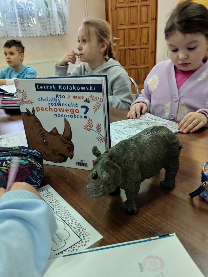 Dziś pomimo mroźnej pogody uczniowie klasy I razem z panią wychowawczynią odwiedzili filię biblioteki w Przedborzu gdzie uczestniczyli w lekcji bibliotecznej poświęconej lekturze „ Kto z was chciałby rozweselić pechowego nosorożca”?