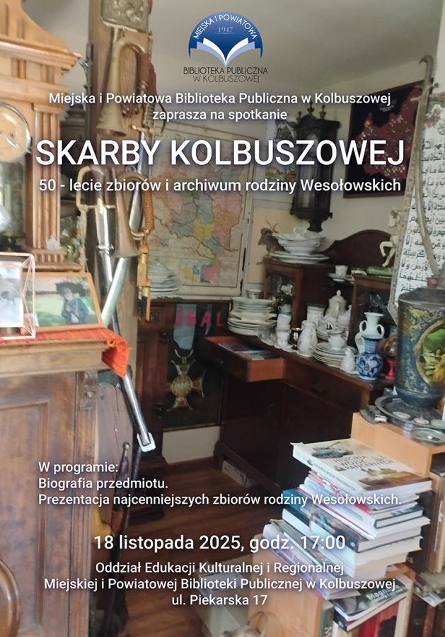 Zapraszamy na spotkanie z Andrzejem Wesołowskim, kolekcjonerem i hobbystą historii Kolbuszowej. Podczas spotkania zaprezentuje kilka z najcenniejszych, gromadzonych już od 50 lat eksponatów dotyczących historii naszego miasta.