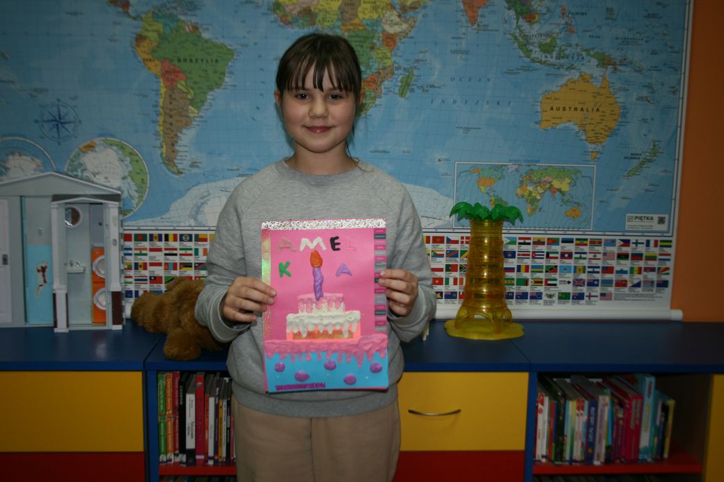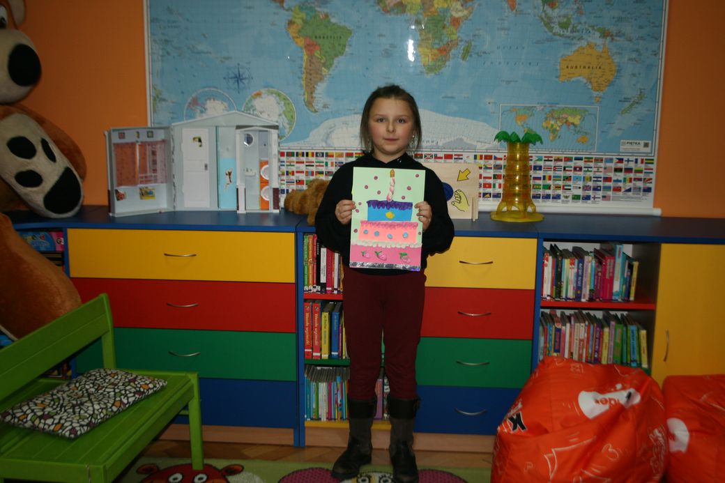 Na koniec spotkania dzieci wykonały z materiałów plastycznych bajeczne torty urodzinowe.