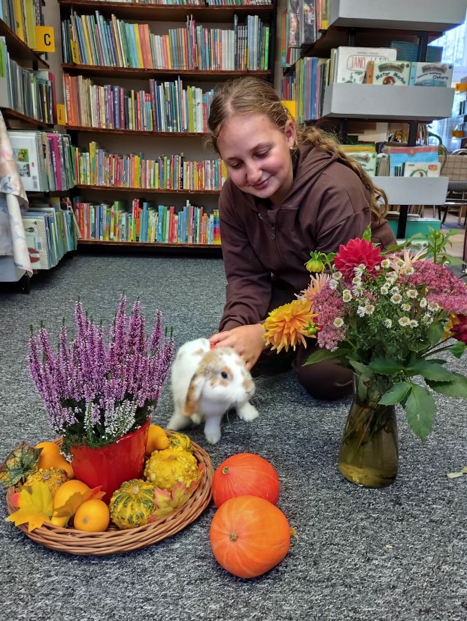 26 września obchodzimy Międzynarodowy Dzień Królika. Te sympatyczne futrzaki stały się bohaterami niejednej książki dla dzieci. Podczas zajęć plastycznych w filii biblioteki w Przedborzu mieliśmy okazję obejrzeć publikacje na ten temat i wykonać piękne prace plastyczne z tymi słodkimi pupilami. Jednak prawdziwą atrakcją dla dzieci były odwiedziny słodkiego królika Taffiego  który razem ze swoją właścicielką Laurą odwiedził bibliotekę. Jak się okazało Taffi jest bardzo spokojnym królikiem, lubi jeść marchewki i trawkę oraz suszone zioła. Pozwala się głaskać i przytulać jednak czasem lubi wysoko skakać i robić psikusy. Dzieci mogły do woli nacieszyć się słodkim i  puchatym gościem w bibliotece oraz zrobić sobie zdjęcie. To było prawdziwe święto dla małych miłośników tych sympatycznych zwierzątek!