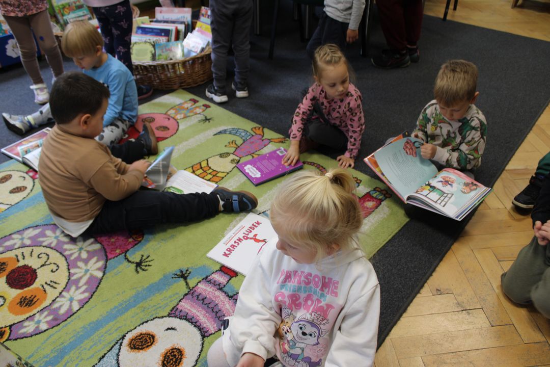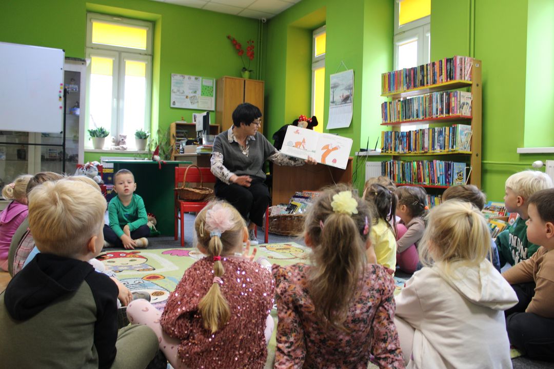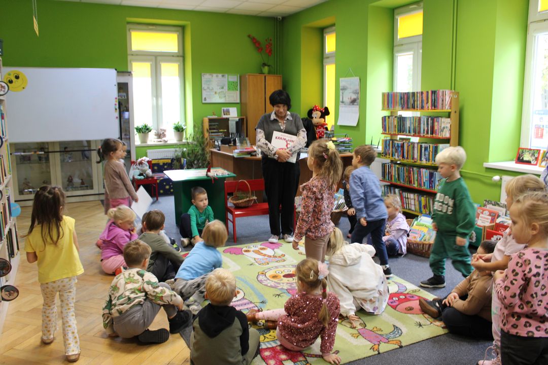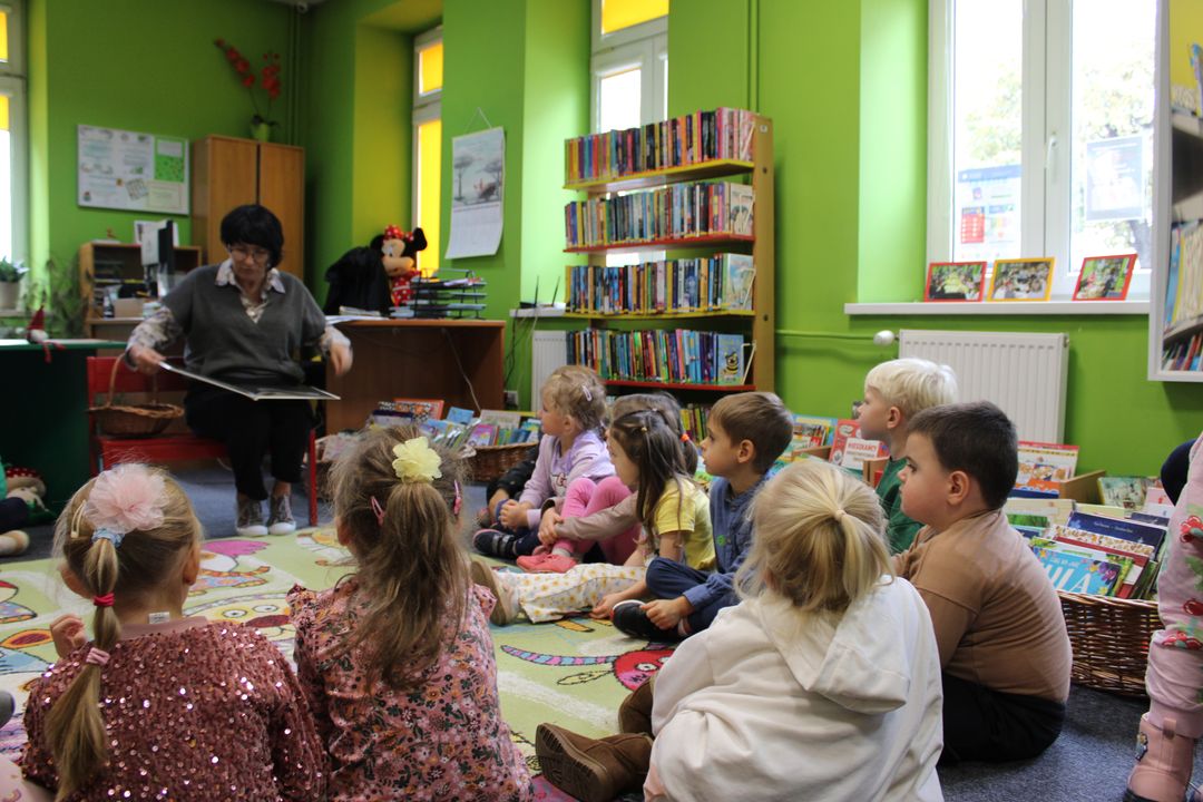 W dniu 14 października 2025 roku gościliśmy w Oddziale dla Dzieci i Młodzieży grupę „średniaczków” z Publicznego Przedszkola nr 2 w Kolbuszowej. Dzieci przybyły do Naszej Biblioteki pod czułą opieką Pani Dorotki, Karolinki i Madzi. Na początku przedszkolaki poznały zasady i procedury zapisu do biblioteki oraz dowiedziały się o co” Prosi Książka”. Uczestniczyły w zabawie ruchowej do piosenki „Szumi wiatr” oraz śledziły z wielką uwagą historię Krasnoludka, który stracił swój domek. Historia na szczęście skończyła się szczęśliwie. Dziękujemy miłym gościom za wizytę w Naszej Bibliotece i zapraszamy do wypożyczania książek.
