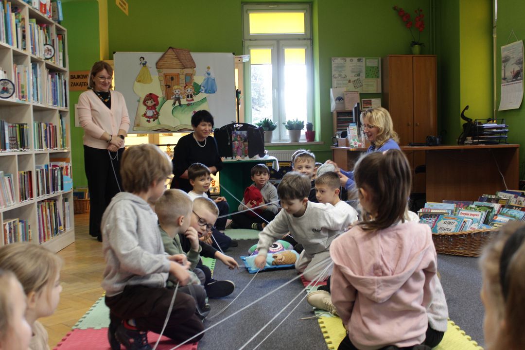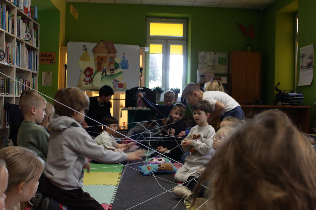 W dniu 19 listopada 2025 roku w ramach przypadającego IV Ogólnopolskiego Tygodnia Biblioterapii obchodzonego tym roku pod hasłem Czytanie daje siłę! w Oddziale dla Dzieci i Młodzieży odbyła się lekcja biblioteczna dla uczniów klasy I A ze Szkoły podstawowej nr 1 w Kolbuszowej. Warsztaty z elementami biblioterapii przeprowadziła Agnieszka Mierzejewska. Zajęcia zostały zrealizowane z wykorzystaniem tekstu literackiego "Puchate i kolczaste" Barbary i Tomasza Piątkowskich. Edukacyjna bajka Kamishibai stała się bazą do rozmów o złych emocjach, które ranią a także o dobrych emocjach, życzliwości i miłym słowie, które potrafi jak za dotknięciem czarodziejskiej różdżki zmienić nastój i smutek zamienić w radość. Na zakończenie warsztatów uczniowie otrzymali pomponiki, które symbolizowały ciepłe i puchate, a mają być nagrodą za miłe słowo, zachowanie, gest. Dzieci zadeklarowały również, że będą ambasadorami „ Puchatego’ w Naszym Mieście.