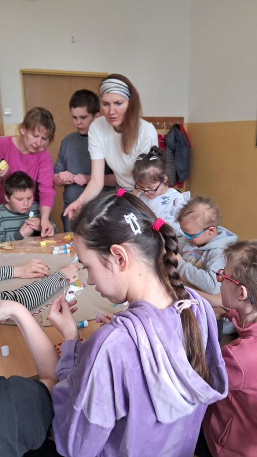 Spotkanie zakończyło się wspólnym udekorowaniem wiosennej, świątecznej pisanki.