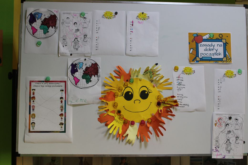 Mali artyści tym razem metodą linorytu wykonali wspólnie plakat o tematyce "tysiąca symboli" oraz konytunuowali swój projekt na bawełniane torby.