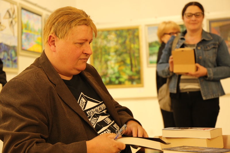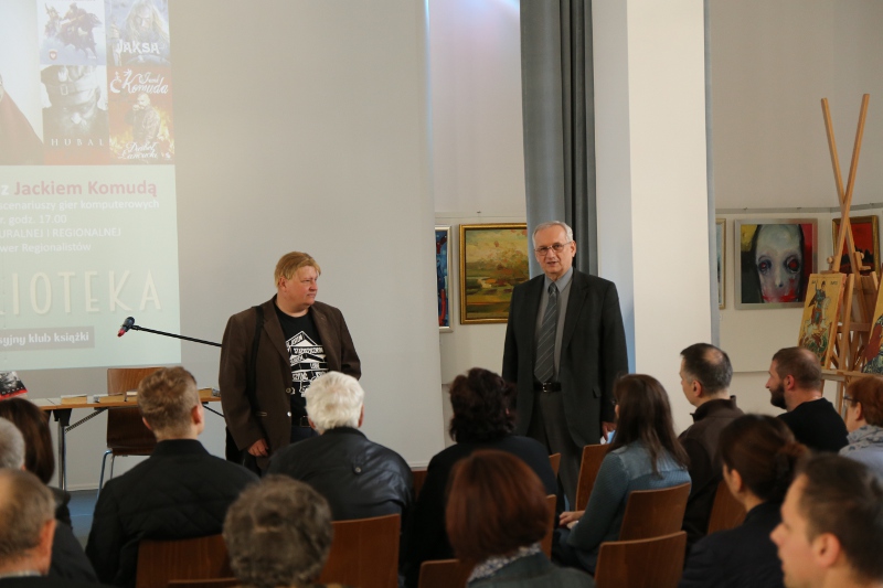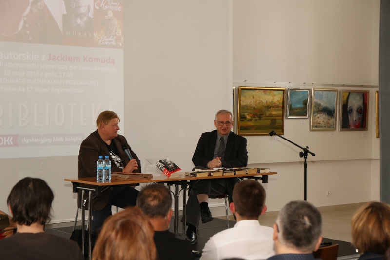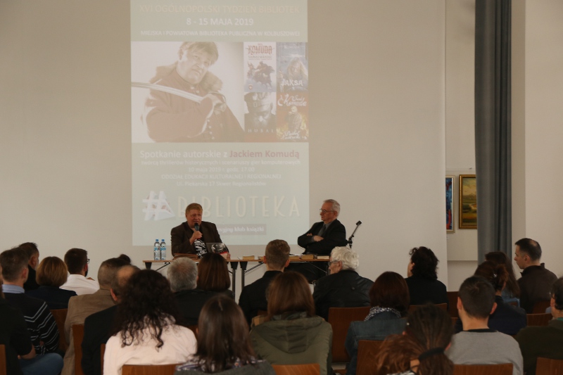 W dniu 10 maja w Oddziale Edukacji Kulturalnej i Regionalnej MiPBP w Kolbuszowej odbyło się spotkanie z pisarzem Jackiem Komudą. Historyk zafascynowany historią Rzeczypospolitej szlacheckiej napisał ponad 20 powieści i opowiadań z gatunku fantasy i trillerów historycznych, m.in. Bohun, Czarna Bandera, Krzyżacka zawierucha, Samozwaniec, Galeony wojny, czy niedawno wydana Jaksa. Głównym motywem dyskusji podczas spotkania był powieść o sławnym zagończyku majorze Henryku Dobrzańskim „Hubalu”. Uczestnicy spotkania mieli możliwość obejrzenia etiudy filmowej o urodzonym w Jaśle majorzeHenryku Dobrzańskim. Jak sam pisarz mówił była to próba zmierzenia się z mitem Hubala i możliwość wejścia w inny okres historii Polski. W najbliższym czasie ukaże się jego powieść dotycząca historii Westerplatte. Spotkanie zostało zorganizowane w ramach Dyskusyjnych Klubów Książki i sfinansowane przez Instytut Książki.