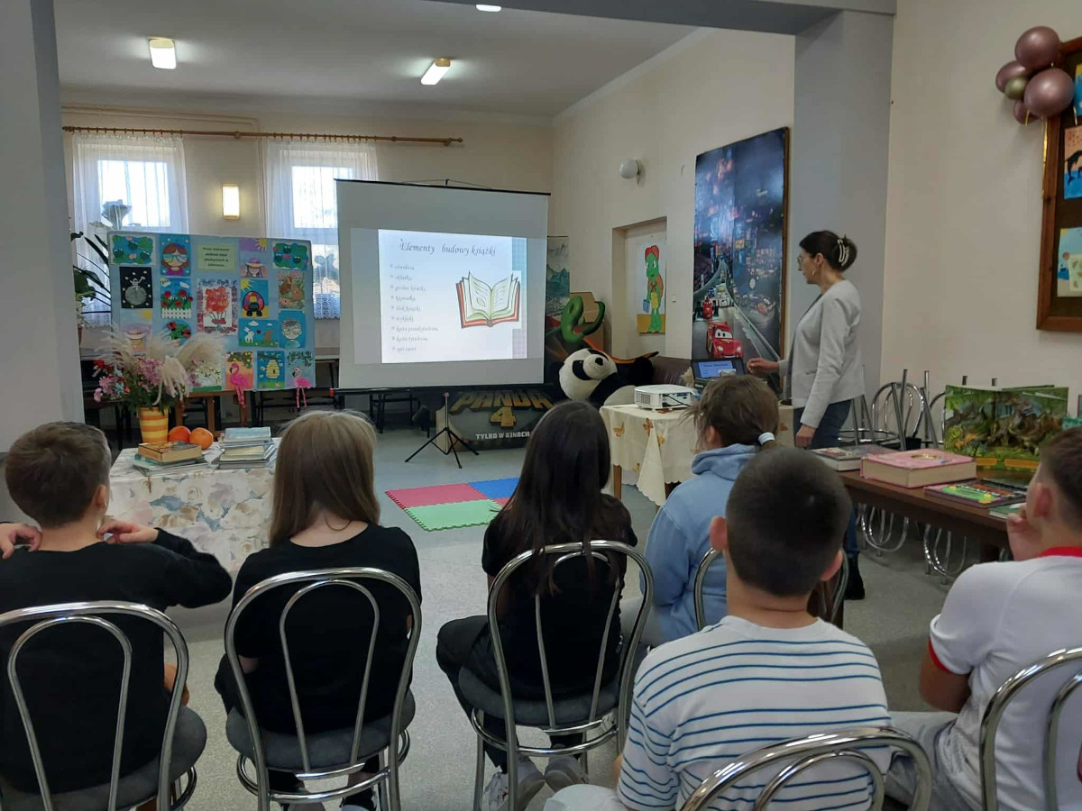 Podczas ostatniej lekcji bibliotecznej w filii biblioteki w Przedborzu uczniowie kl. IV ze Szkoły Podstawowej zapoznali się z budową książki oraz układem jej treści a także poznali zawody które związane są z powstaniem książki.