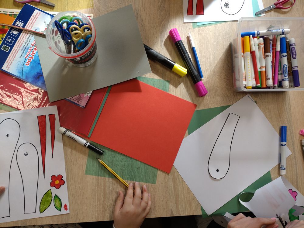 Ferie w bibliotece były doskonałą alternatywą dla czasu spędzanego przed ekranem, stawiając na integrację i radosną atmosferę. Uczestnicy zajęć chętnie sięgali po gry planszowe, dostępne w bibliotece, ucząc współpracy, zdrowej rywalizacji i logicznego myślenia. Pozostawili także po sobie, wiele ciekawych i kreatywnych prac plastycznych.