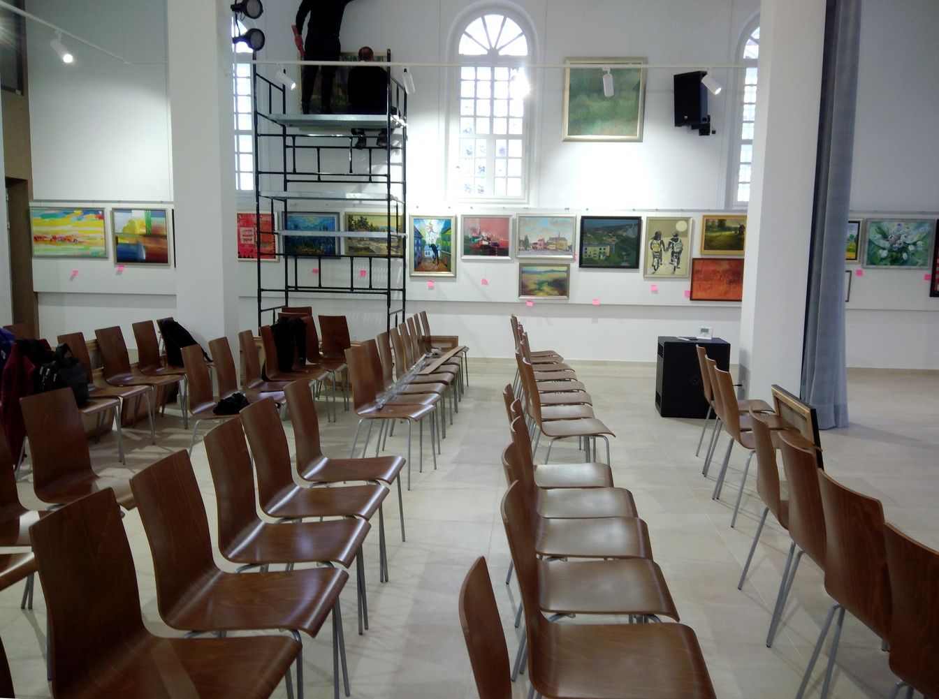 Przygotowywanie ekspozycji obrazów w Oddziale Edukacji Regionalnej i Kulturalnej